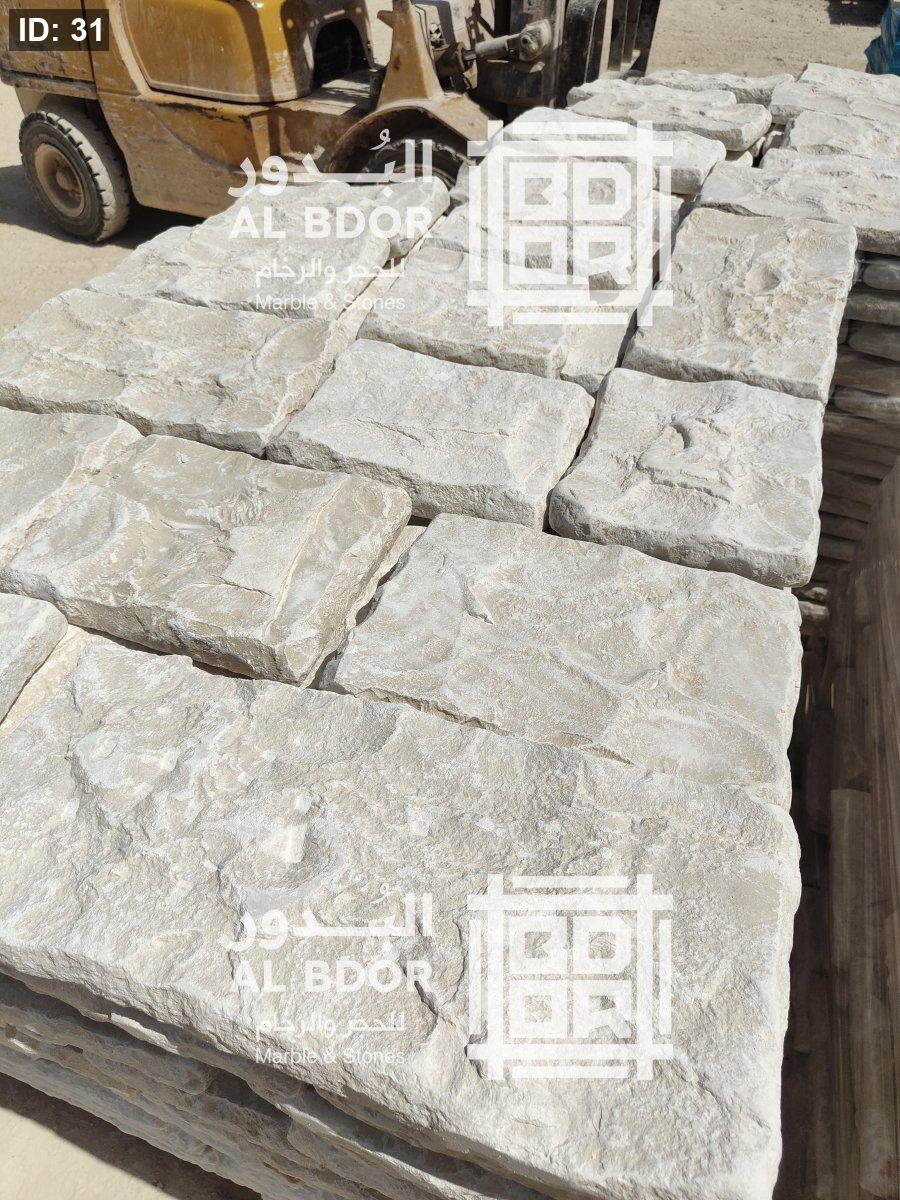 حجر طبيعي للواجهات يستخدم للتركيب الداخلي والخارجي ، سماكة 3سم، مقاس ارتفاع 25سم اطوال متعددة، السعر بالمتر المربع شامل التوصيل الى جميع المناطق.