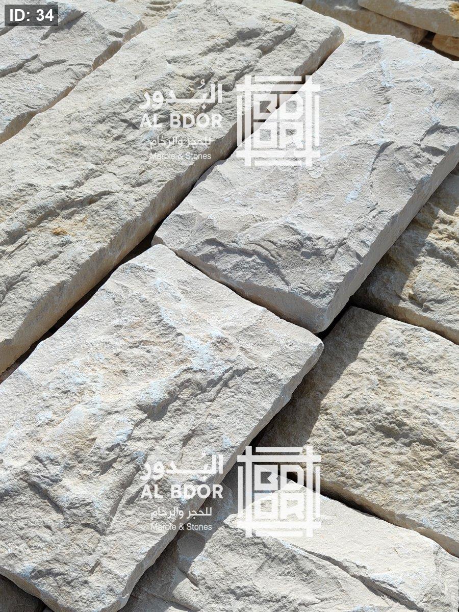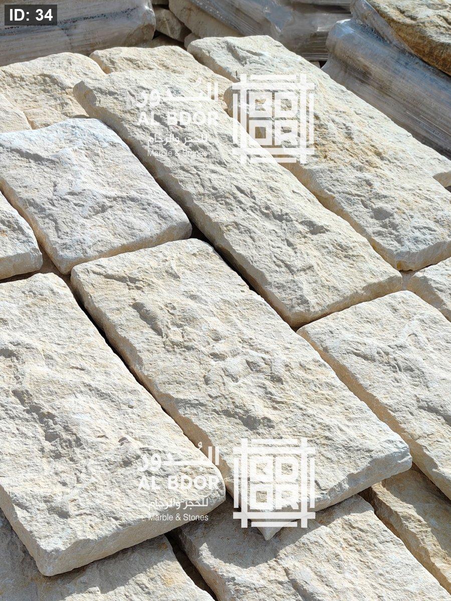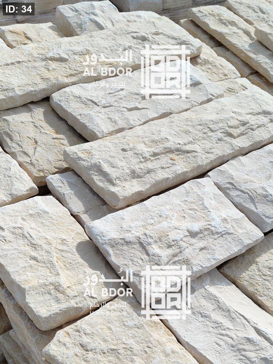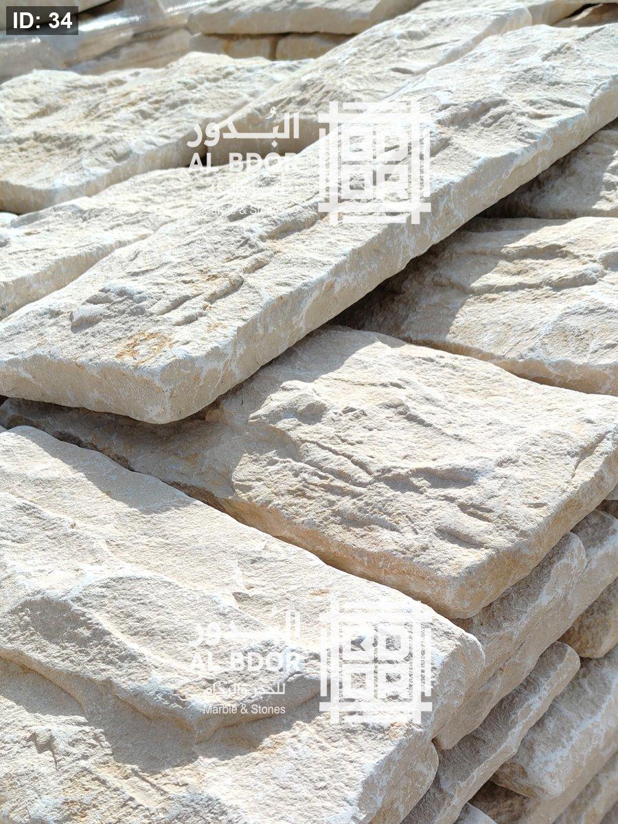 حجر طبيعي للواجهات يستخدم للتركيب الداخلي والخارجي ، سماكة 3سم، مقاس ارتفاع 20سم اطوال متعددة.